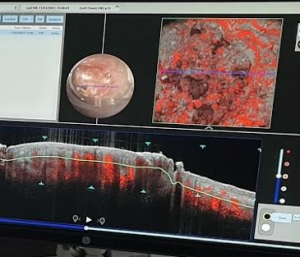 - ermöglicht mikroskopisch feine Schnittbildaufnahmen durch die Hautschichten (ähnlich wie Ultraschall), z. B. bei Hauttumoren.